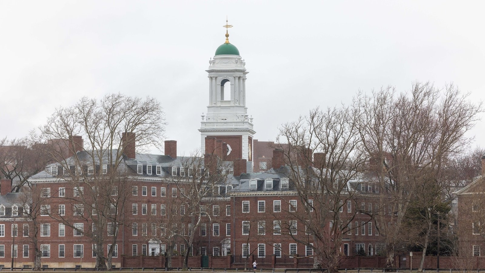 A person runs past Elliot House at Harvard University, March 17, 2025, in Cambridge, Mass.