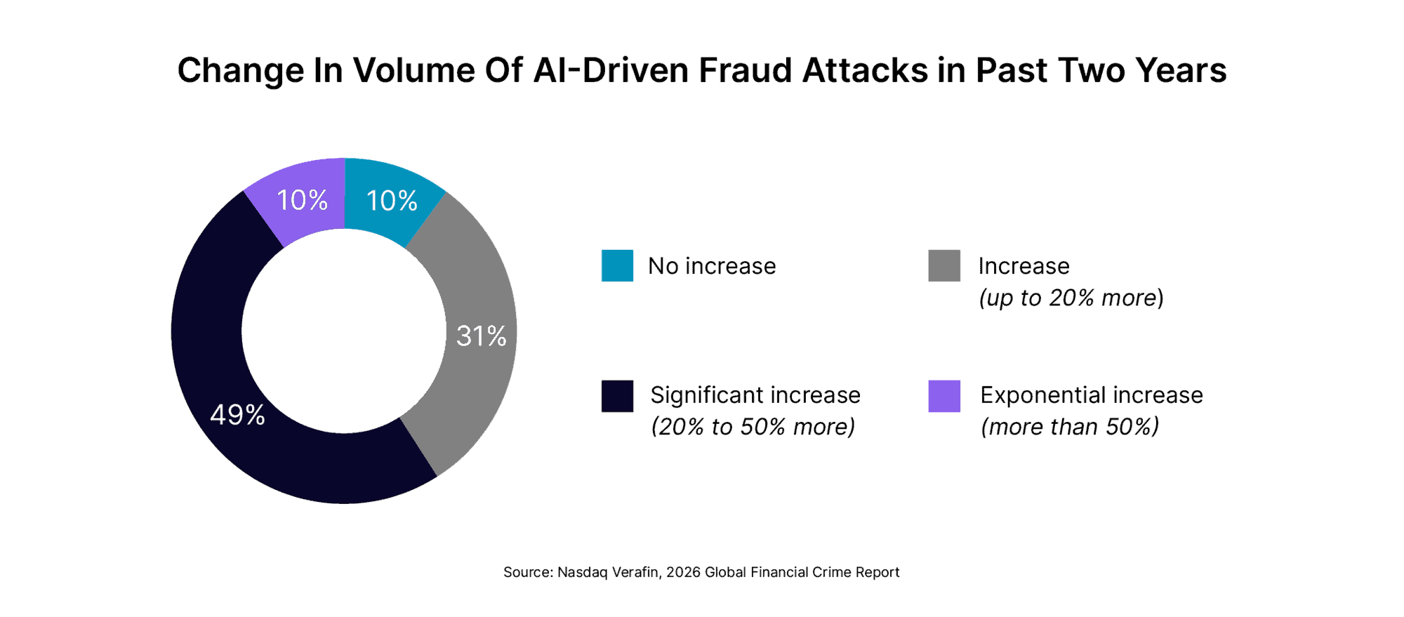 The report shows that AI-related fraud and scam activity has increased sharply with cyber-enabled scams reaching $14.3 billion in 2025, an annualized growth rate of 19.6% over two years. Of the more than 500 financial crime professionals surveyed, 90% report an increase in AI-driven attacks over the past two years.