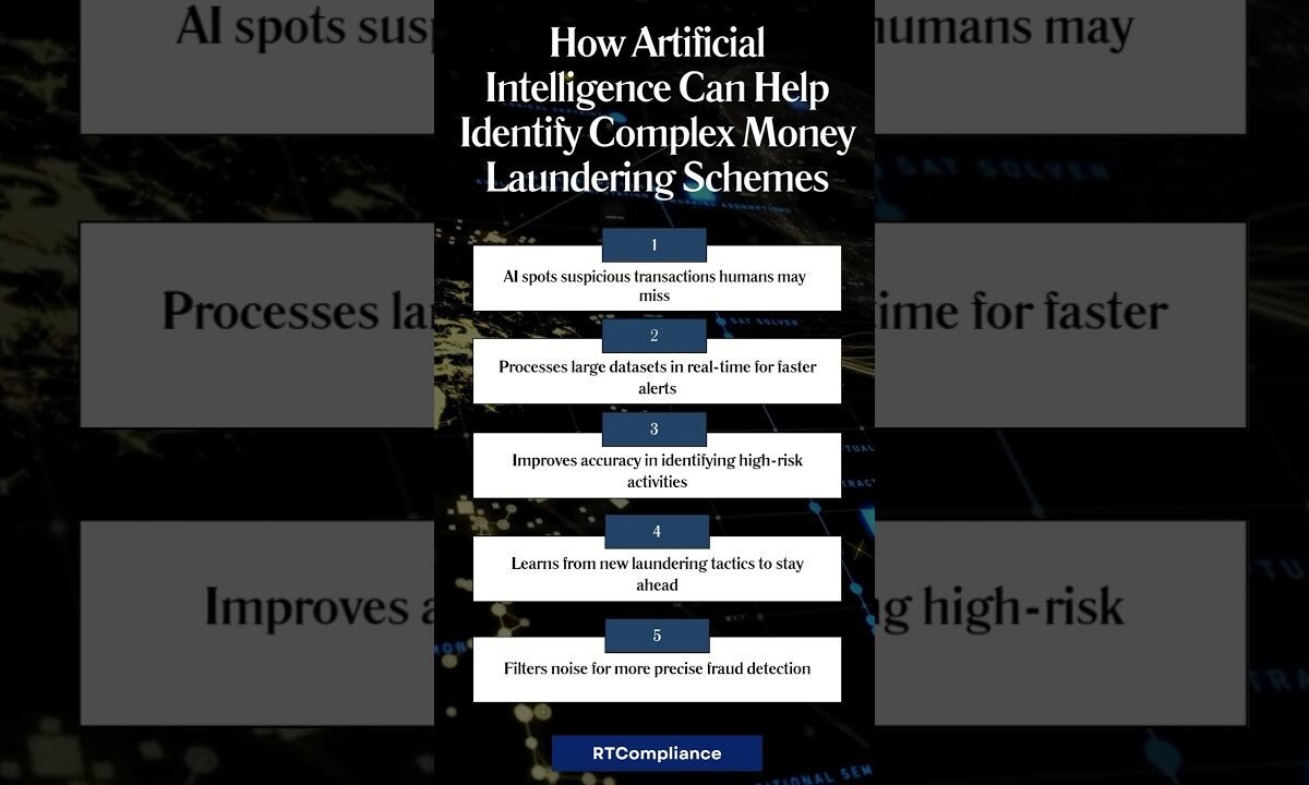 #rtcompliance #ArtificialIntelligence #AML #MoneyLaunderingDetection #MachineLearning #FraudDetection #AIinAML #FinancialCrimePrevention #AMLcompliance #AItools #FinancialInstitutions #AMLsystems #FraudPreventionTech #AMLtechnology #AIinFinance #AIandCompliance