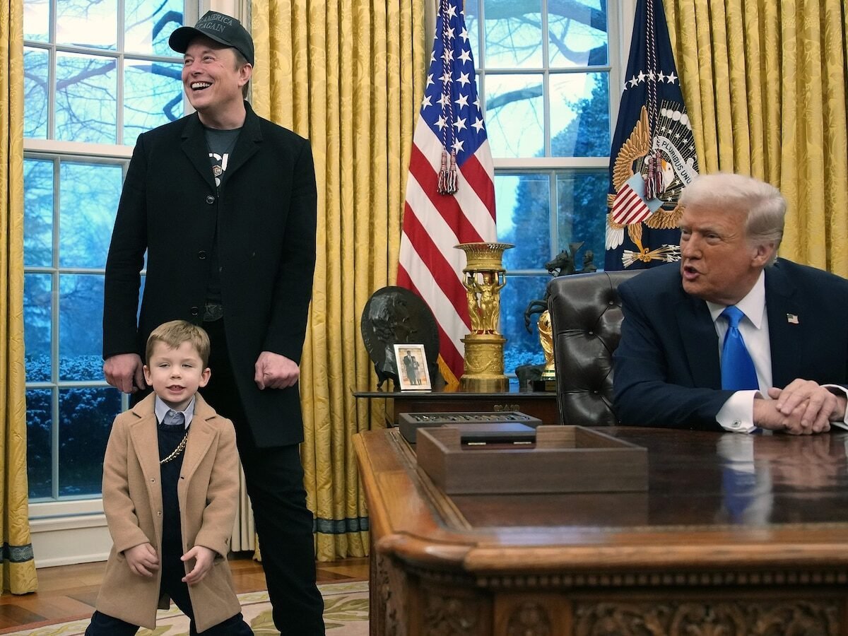 President Donald Trump is joined by Elon Musk and his son X Æ A-Xii, as he signs a series of executive orders in the Oval Office at the White House on Feb. 11, 2025 in Washington.
