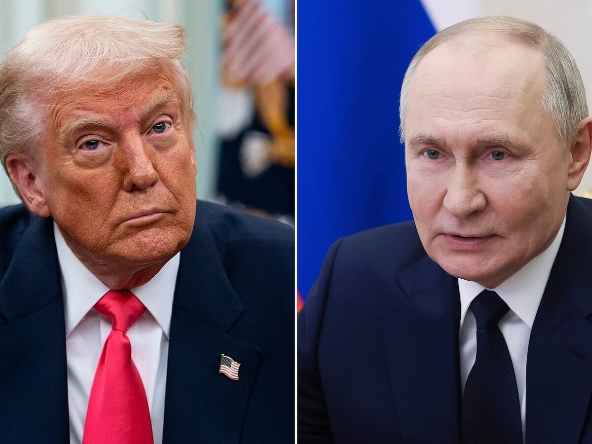 President Donald Trump in Washington, Mar. 6, 2025 and Russian President Vladimir Putin in Moscow, Mar. 7, 2025.