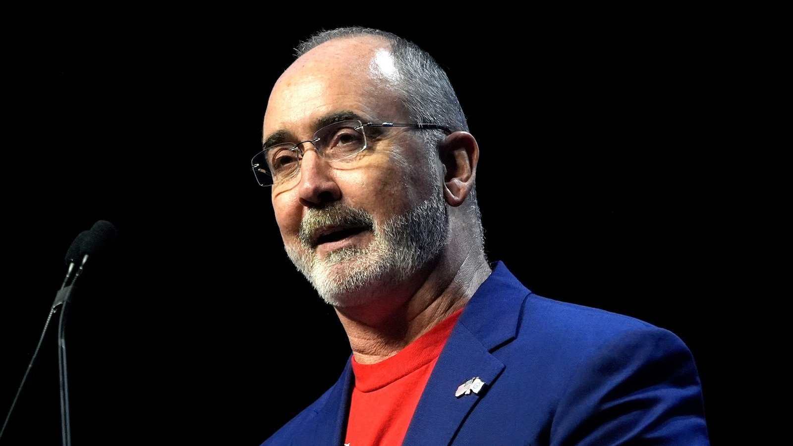 In this Nov. 5, 2024, file photo, United Auto Workers President Shawn Fain speaks at an election night campaign party in Detroit.