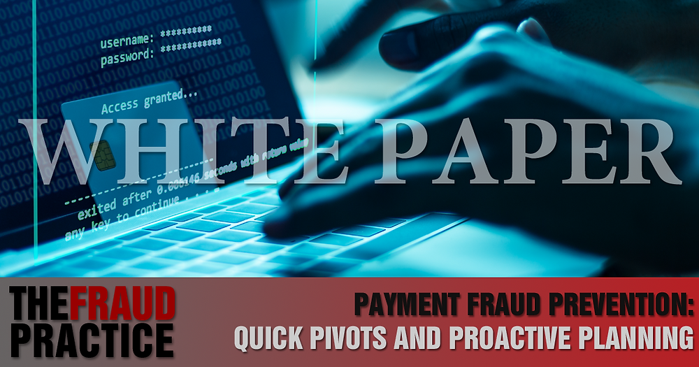 This free white paper from The Fraud Practice discusses the dual mandates of a successful payment fraud prevention strategy: responding to fraud attacks immediately with quick pivots while maintaining an effective long-run strategy that evolves over time with proactive planning to keep pace with dynamic fraud trends and align with internal business goals.